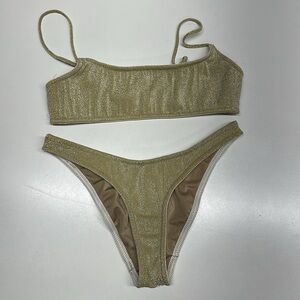 Triangl Mica Bikini 2 Piece Matching Set Swim Metallic Sparkle Gold Size Small