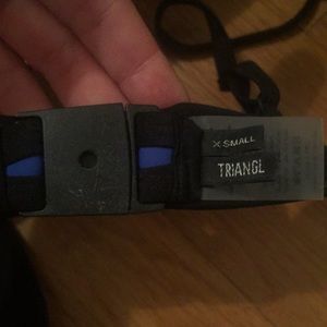 Classic Triangl bathing suit. 100% neoprene. Small bottom, extra-small top. Worn once to the beach, some sand particles in the white part of the top piece as pictured. Adjustable straps. Fit - I am a 32A, size 27 in the hips, and this suit fit me a bit snug. If you are typically an extra small, you'd fit in this suit. If you're around my size, it will fit but will be a bit snug.
