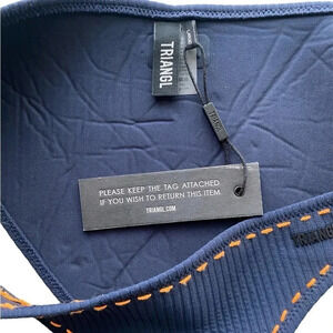 Triangl Swimwear Navy Orange Stitching Bikini Bottom Women’s Size Large NWT