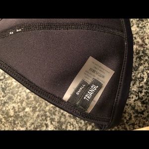 Blue and black triangl bikini :: once loved but still in good condition! Some fuzzies on the front knit part but not super noticeable! << TOP IS A SMALL, BOTTOM IS A LARGE >>