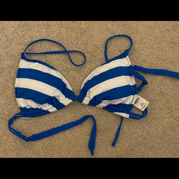 Royal blue and white striped triangle bikini top from Target