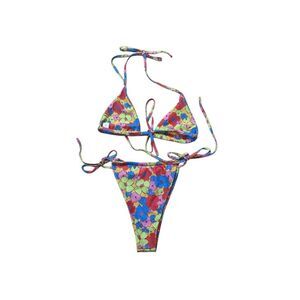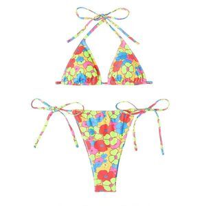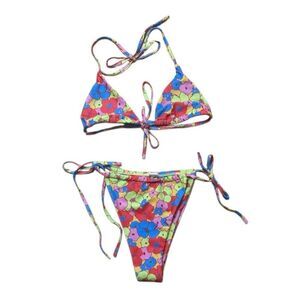 Triangle Cheeky Bright Floral Print Bikini Large Multicolor