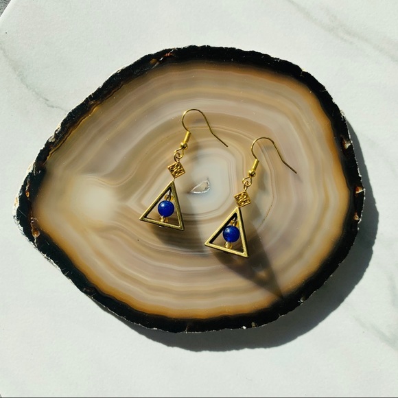Blue Aventurine triangle earrings. Gold plated hypoallergenic. Handmade. New with tags.