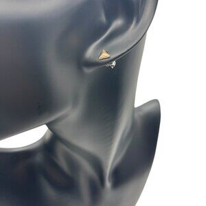 Add a touch of elegance to your outfit with these beautiful triangle earrings. The bronze color gives them a classic and timeless look that will never go out of style. These earrings are perfect for any occasion, whether you're dressing up for a formal event or just adding some flair to your everyday look. The triangle shape is unique and eye-catching, making these earrings a great addition to any jewelry collection. The stud style is comfortable and secure, ensuring that they will stay in place all day long. Whether you're a fan of earrings or just looking for a stylish accessory, these triangle earrings are sure to impress.