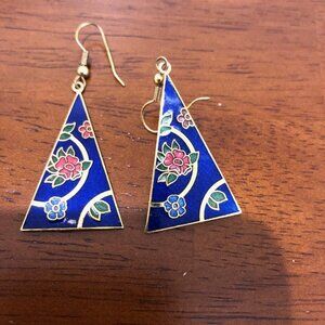 -Triangle Floral Blue Dangle Earrings Pre-Owned.