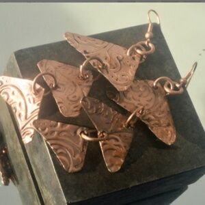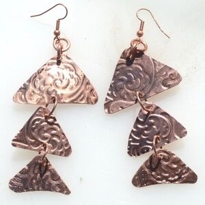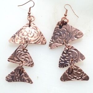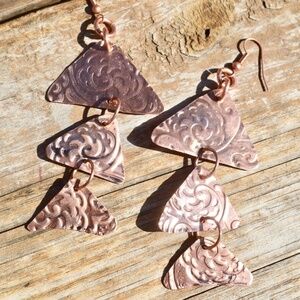 Triangle Geometric Copper Earrings Fish Scales Pattern Handmade Boho Gift Rustic