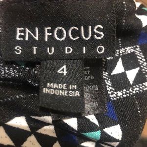 Stretchy pants, black/turquoise/white colored, slim fitting, never worn, size 4