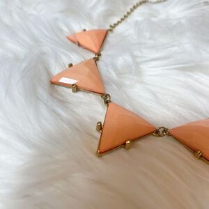 Triangle Peach Boho Geometric Gold Plated Necklace Size 21”. Beautiful necklace, perfect accessory for a graphic tee or blouse. This is in excellent pre owned condition with no flaws.