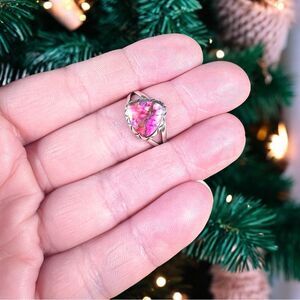 Triangle Pink Kingman Turquoise Ring Solid Sterling Silver Ring - Sz 7.5