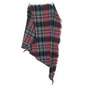 Triangle Plaid Fringe Scarf Black Red Green Checkered