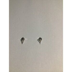 These silver-tone triangle round stud earrings offer a sleek and minimalist design suitable for formal or professional settings. Lightweight and understated.