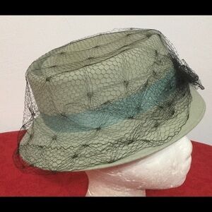 Triangle Wool Blue Hat w Netting MADE IN USA vtg