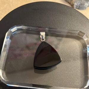 Triangle abalone shell pendant with sterling silver accents.