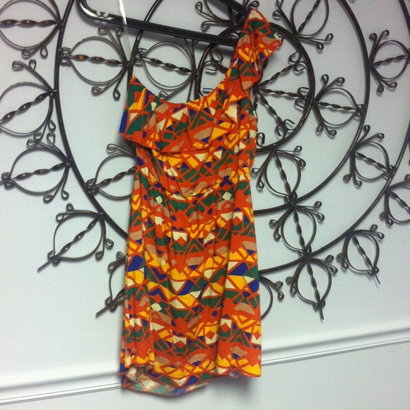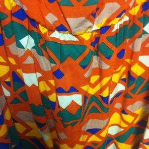 This is a super cute and fun dress only worn once. It has a triangle print multi colored pattern and is in very good condition