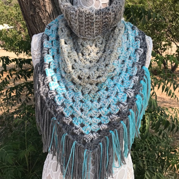 Handmade crocheted triangle scarf. Wear as a pull over to keep your neck very warm. Made with love 💜