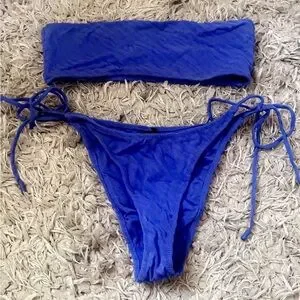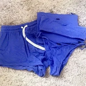 @ejohn43 the shorts and bikini are in excellent condition!:) I’ve worn them one time, I can include more pictures up close when I am home today. Also the color is like a purple/blue, I would say more blue but to me there’s a purplish hue.