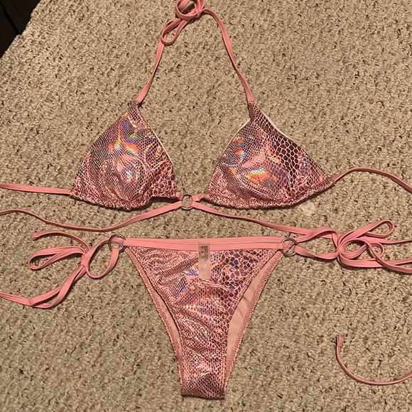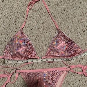 SHEIN snakeskin print two piece pink bikini. Doesn’t fit right. Only tried on and it’s been to long to return it.