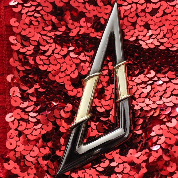 Very cool triangle brooch! Colors are a shiny gun metal gray and gold Measures 4.75'' long