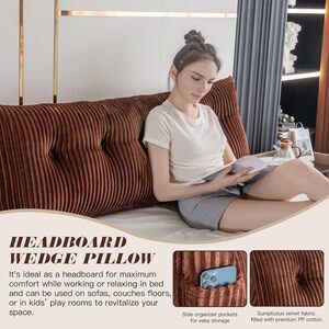 Twin size, 39x8x20 Inches, the large triangular wedge pillow itself aligns with the width of the mattress, alternative as a headboard. ★NOTE: As the backrest is shipped compressed, please remove the vacuum bag, shake vigorously for 5 minutes, and allow 48 hours for the pillow to restore its original fluffy.