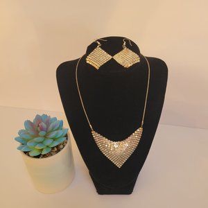 Triangular Silver Mesh Necklace and Earrings. Necklace is 18" and Earrings are 1.5".