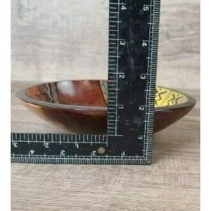 Tribal Art Hand Painted Glossy Bowl 7.25" dia Two-Tone Wood Decor Trinket