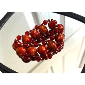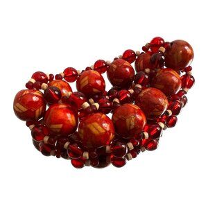 This is a gorgeous Tribal Beaded Double Strand Stretch Bracelet Red and Yellow Marble Womens.