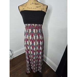 Pre-owned Love Fire Tribal Black Colorful Tie Waist Summer Maxi Dress
