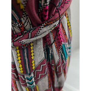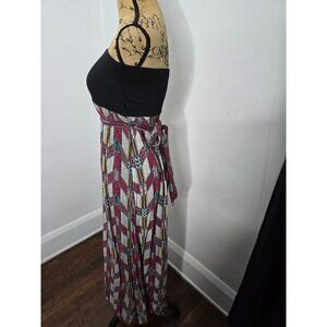 Tribal Black Colorful Tie Waist Summer Maxi Dress Large