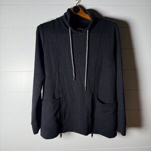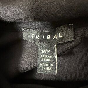 Tribal Black Mock Neck Shirt Low Front Pockets 2 Front Zippers Sz Medium