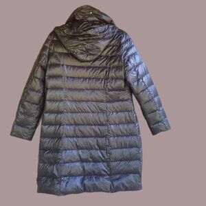 Tribal Black Puffer Jacket Long Coat Women's Jacket | Shiny | Snap in Hood
