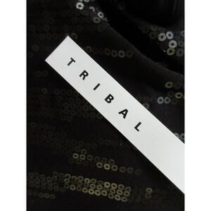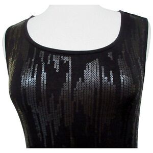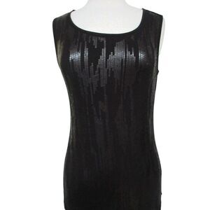 Tribal Black Sequin Front Pullover Tank Top Sz Small Machine Wash Scoop Neck Sle