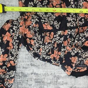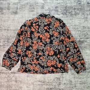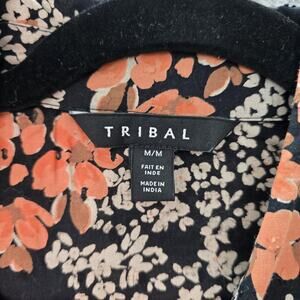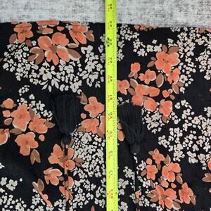 Tribal Blouse Womens Medium Black Orange Floral Long Sleeve Boho Tassel Top