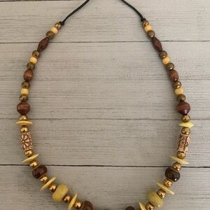 Tribal Boho Necklace Wood Ceramic African Ethnic Brass Painted Porcelain Bead 26