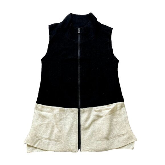 Tribal Brand Boiled Wool Tunic Vest with Pockets Black White Colorblock