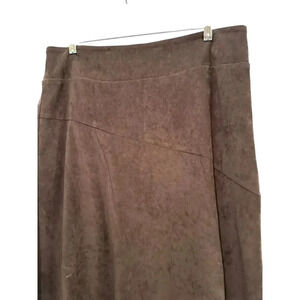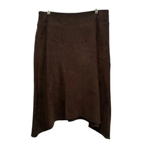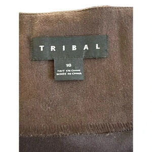Tribal Brown A-Line Midi Skirt Size 10 faux suede