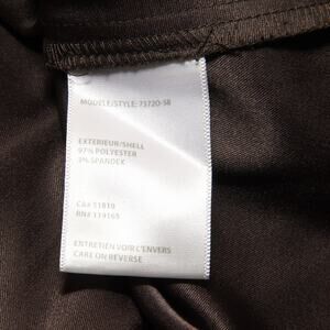 Special features: Wide waistband. Diagonal hip seam for interesting detail. Sharkbite type asymmetric hem. Has stretch