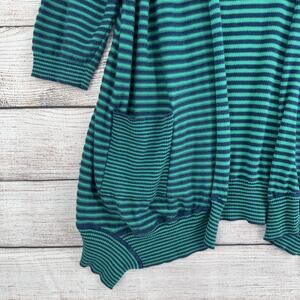 Tribal Cardigan Sweater Womens XL Blue Green Striped Open Front Pockets Casual