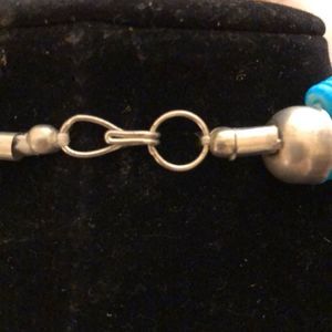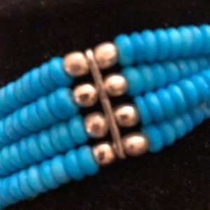 Silver tone beads and multi layered rainbow ๐ color beads against bright blue beads I call this the ๐ tribe is so colorful and powerful statement necklace sterling silver beads and enclosure. Purchased 20 years ago from another country .... time to share with someone who loves hand made tribal inspired beadwork .