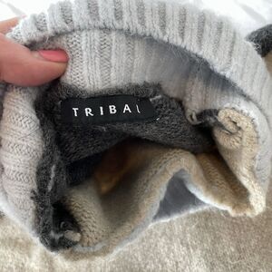 Tribal sweater, womens mock neck sweater, colorblock pullover, neutral sweater, fall winter knitwear, acrylic blend sweater, long sleeve knit top, beige gray tan sweater, retro sweater, 90s inspired knit, casual workwear sweater, cozy layering piece, soft knit pullover, everyday essentials, minimalist wardrobe basics, colorblock aesthetic, indie sleaze, normcore sweater, blokecore, scandi minimal style, clean girl aesthetic, 2010s revival knitwear, retro revival sweater, oversized cozy knit, dopamine dressing, neutrals,