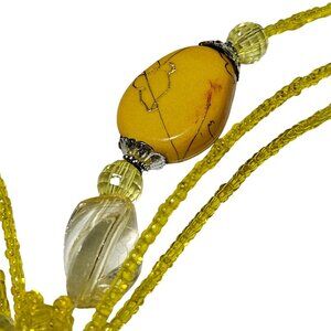 This elegantly crafted necklace features a prominent yellow pendant, complemented by matching stone beads and a durable lobster clasp. A sophisticated accessory that adds a touch of refined color to any ensemble, ensuring both style and function.