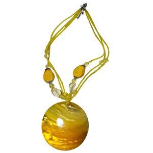 Tribal Egg Yolk Amber Beaded Pendant Necklace Yellow Statement Fashion Jewelry