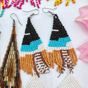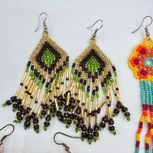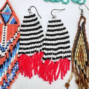 Tribal Ethnic Southwestern Seed Bead Fringe Curtain Earring Lot Colorful Boho
