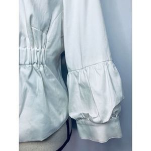Tribal Extensible Stretch Ivory Stretch Waist Sateen Jacket Puff Sleeve Size Small 3/4 Sleeve