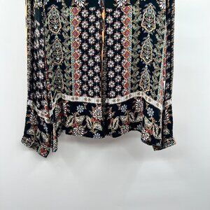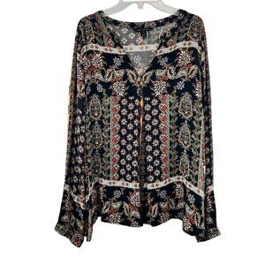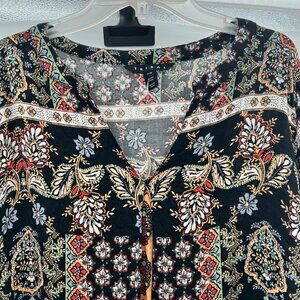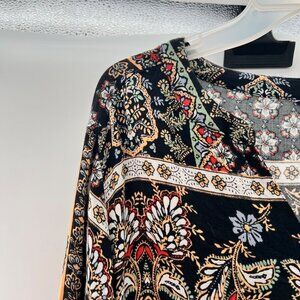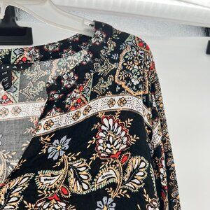 Tribal Floral Top Women's Size MP Black/Multi Long Sleeve Lightweight Pullover