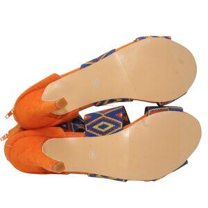 Tribal Gladiator 9.5M Blue Orange Multicolored Ankle Strap Zipper Accent Heels