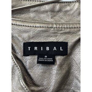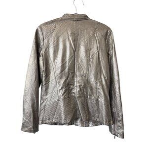 Tribal Jacket Size 8 Full Zip Faux Leather Long Sleeve Metallic Pewter Classic