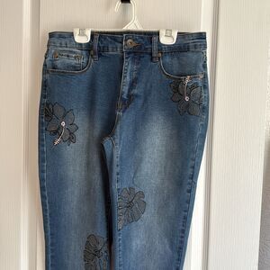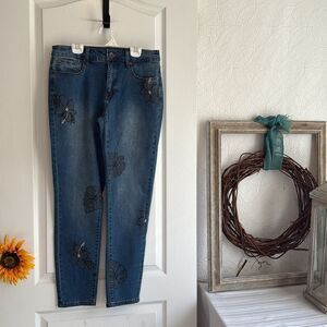 Tribal Jeans Ankle Jeggings Floral Embroidered Blue Jeans - Size 6 - NWOT