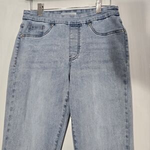 Tribal Jeans Audrey Mid Rise Straight Crop Jeans Pull On Sz 6 Raw Hem