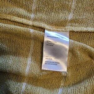 Stay cozy and stylish with this yellow striped women's Tribal Jeans cardigan sweater in a size XL. Perfect for layering and adding a pop of color to your outfit. Cardigan sweater measures approximately 24 inches across the chest and approximately 23 inches under the arm to the bottom of the sweater. fabric is 77% polyester and 23% viscose. very nice sweater great condition
