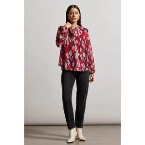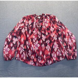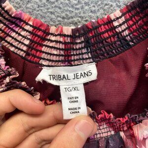 Tribal Jeans Flowy Swiss Dot Chiffon Blouse,Size XL,Preppy,Lined,Drawstring